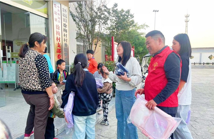 在徐梅村,还有一个特殊的小女孩让杜庆才格外牵挂。今年七岁的魏正妍刚上小学,父亲多年失联,母亲在她年仅三个月时便改嫁,从小跟着73岁的退伍老兵爷爷生活。爷爷的收入仅有一年的农作物收入与国家补贴,家庭条件十分困难。杜庆才了解情况后,不仅为女孩办理了最低生活保障申请手续,缓解家庭生计压力,还格外关注女孩的成长,“最近长个了吧?天冷了,得穿厚棉衣了……”冬天未到,他已来到孩子家里问清衣服尺寸大小,考虑孩子温暖过冬的事儿。另外,在杜庆才的联系下,蚌埠学院关工委连续两年来到徐梅村,为村里的留守儿童送来书包、文具等学习用品。魏正妍也在其中。
