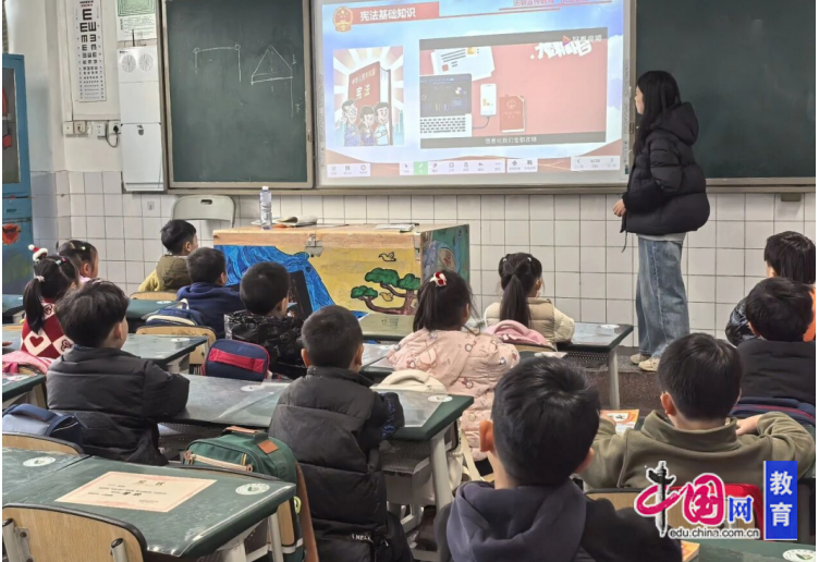 晨读悟初心,誓言表决心。在12月4日国家宪法日,该校各班开展宪法晨读活动,师生逐字诵读条文,感受宪法庄严权威。同日下午,青羊区司法所联合律师为该校五年级学生授课,律师以“法律大树”比喻解读宪法根本地位,结合校园欺凌问题讲解应对方法,引导学生拒绝施暴、不做旁观者,让宪法知识与生活紧密结合,提升学生的法治意识与自我保护能力。