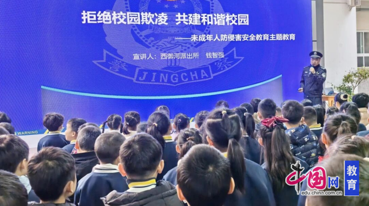 法治校长宣讲,精准防欺凌。12月1日,西御河派出所副所长、法治校长钱智强入校开展法治宣讲。他以“校园小摩擦”为引,清晰区分“矛盾”与“欺凌”,结合《中华人民共和国未成年人保护法》及真实案例强调校园欺凌的违法危害,给出“冷静说‘不’、及时避开、立刻报告”应对三步法,明确旁观者责任与欺凌者行为边界。活动最后,他还带领全体学生宣誓,坚定守护校园安全的决心,有效筑牢校园法治防线。