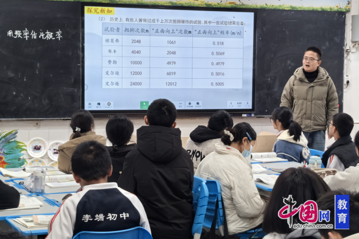 活动中,渡口中学数学教师魏国升执教《用频率估计概率》一课。他以趣味抽奖活动为教学载体,将抽象的概率与频率知识具象化。课堂上,魏国升引导学生参与抽奖实验、记录数据、分析结果等活动,让学生在亲身体验中感知频率与概率的内在关联,理解“用频率估计概率”的核心逻辑。生动有趣的互动形式充分调动了学生的参与热情,大家积极思考、主动探究,在实践中扎实掌握了知识点,收获颇丰。