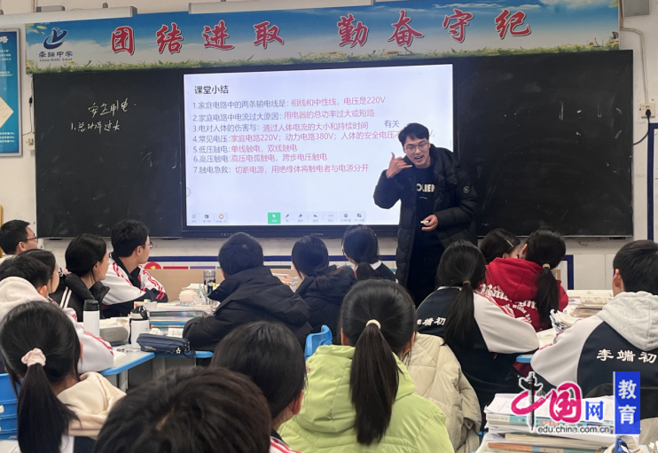 渡口中学物理教师钟凯执教《生活用电》一课。他深耕“理论联系实际”教学理念,以家庭电路安装、日常用电隐患、触电急救等生活场景为核心素材,将抽象的电学知识与学生生活紧密结合。课堂上,钟凯创新采用小组合作模式,引导学生围绕“安全用电注意事项”“违规用电危害”等主题展开讨论、模拟排查,在思维碰撞与实践探究中筑牢安全用电意识。生动直观的教学呈现与高效的互动形式,让学生既掌握了实用的用电知识,又提升了团队协作与问题解决能力,课堂效果显著。