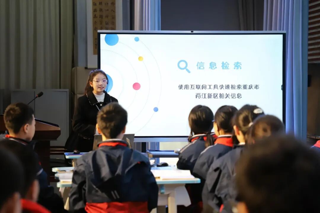 杨晶老师执教的《互联网工具应用》示范课,以"重庆两江新区区域调整"为真实情境,引导学生通过词云提炼、思维导图构建、VR全景体验等AI技术,完成从信息筛选到成果展示的完整实践。"自然语言处理、知识图谱与生成式AI不仅是工具,更是培养学生批判性思维与创新能力的桥梁。"
