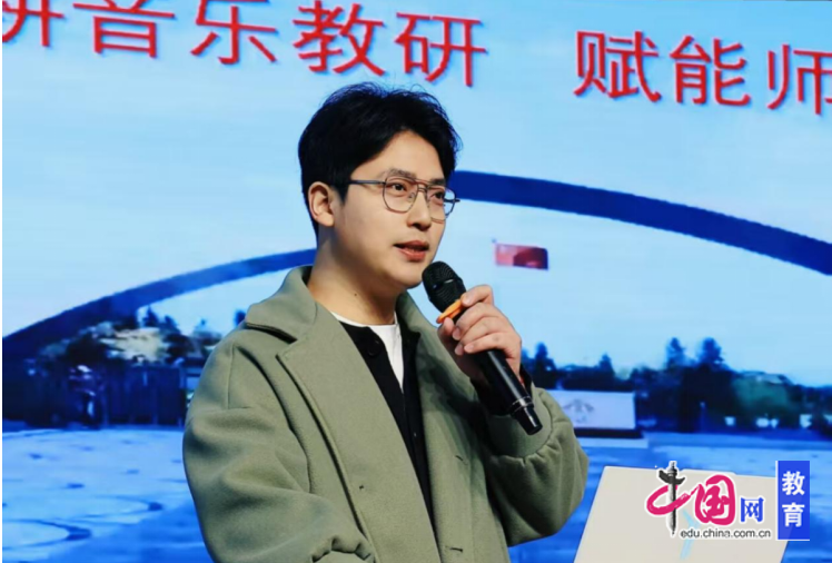 最后,峨眉山市教研室音乐教研员徐明德老师充分肯定了教研组过去一学年的努力和成果,并从新教材过渡期所面临的问题、教学改进的方向、教学改进的具体实施策略以及教学改进的保障措施等方面,为全体教师做了深度的解析并指明了方向。徐老师指出:新教材过渡期,没有现成的教学改进模板,需要大家“更新理念、探索实践、提升能力”。在课堂中不断尝试、在教研中不断碰撞、在反思中不断成长。