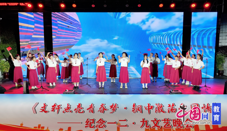整场演出紧扣爱国主义主线,节目形式多样,涵盖舞蹈、声乐、情景剧等多种艺术形式。七年级情景剧《觉醒年代》再现青年学生奔走呼号的峥嵘岁月,八年级情景剧《收复青岛》以铿锵台词点燃家国情怀;舞蹈《向光而行》《十送红军》用跃动的舞姿诠释信仰的力量;合唱《灯火里的中国》《红旗飘飘》以嘹亮歌声告白祖国……舞台上,学生们精神饱满、情感投入,展现了当代青少年积极向上、多才多艺的精神风貌。