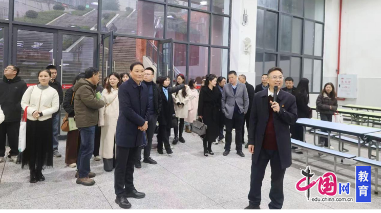 涪州中学党总支书记颜华带领工作室成员深入参观校园。从办学规模、建筑布局的整体介绍,到食堂、游泳馆、书法室、艺术长廊、楼顶种植园等场所的细致解读,学校的教育理念在空间中有机呈现。