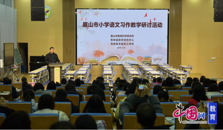 笔墨传情,教研赋能;习作引路,共促成长。12月9日,眉山市青神县学道街小学校暖意融融、文脉流淌。来自眉山市各区县和金川县的小学语文教师约240人齐聚一堂,以课为媒、以研促教,共探习作教学新路径,共品语文教育真韵味。眉山市教育科学研究所小学语文教研员王晓鸣、金川县教育局教研室王发美主任、金川县东方红小学校长卓坤睿、青神县教研中心主任贾志文等到场指导。