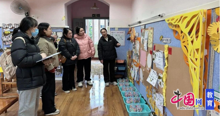 该幼儿园陶陶、刘应雪、林娟三位教师分享了在内部督导引领下,美工区、语言区、科学区环境优化的具体案例,揭示如何通过有准备的环境支持幼儿的个性化学习与发展。王兴艳进一步分享了班级主题墙的创设经验,展示了墙面作为课程“可视化”足迹的实践过程。随后,跟岗教师分组进入班级实地观摩,并就环境与儿童发展的关系展开了热烈探讨。