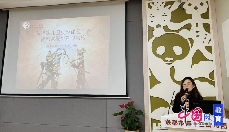活动首日,成都市第十三幼儿园集团园长唐琳以《从“幼儿园皮影课程”看特色课程建构与实施》为题作专题分享,她深入阐释了该园将传统文化与幼儿经验有机融合的教育实践。唐琳表示,皮影课程不仅是艺术传承的载体,更是幼儿表达自我、协作创造的教育媒介。