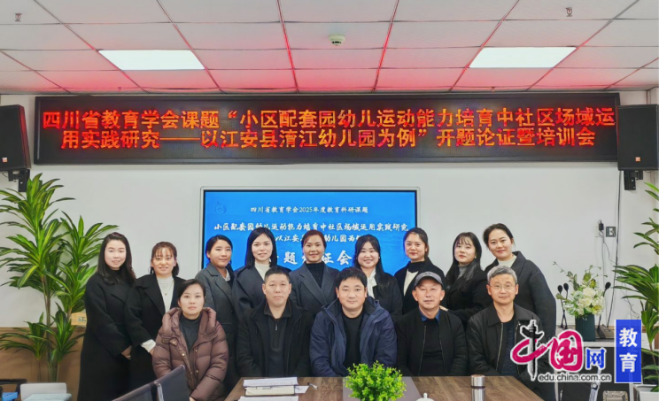 12月10日,四川省教育学会青年教师专项课题《小区配套园幼儿运动能力培育中社区场域运用实践研究——以江安县淯江幼儿园为例》开题论证暨培训会在宜宾市江安县江安镇淯江幼儿园顺利召开。本次会议旨在对课题的研究价值、设计思路与实践路径进行科学论证,为推动幼儿园有效利用社区资源、科学促进幼儿运动能力发展凝聚智慧、指明方向。会议由郭章荣主持。