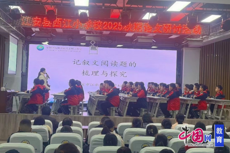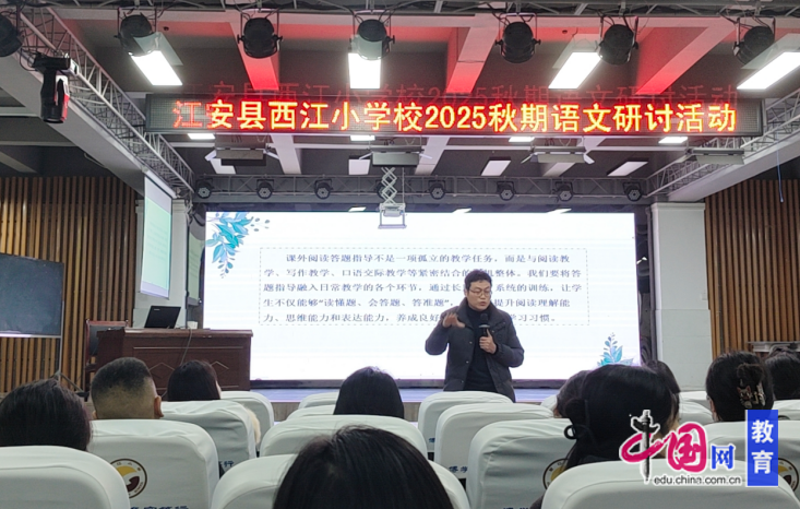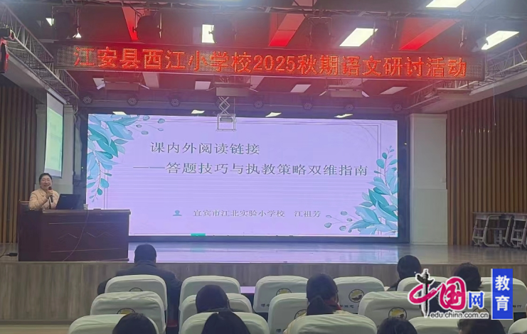 为紧扣语文考试改革导向,破解小学阅读教学课内外衔接不畅等实践难题,夯实教师教学能力,提升学生阅读核心素养与应试能力,12月9日,西江小学语文教研组阅读教学专题研讨活动在学术报告厅成功举办。本次活动由翠屏区江祖芳语文名师工作室主讲,西江小学承办。西江小学全体语文教师及小学第四学区协同团队学校部分语文教师共同参与。