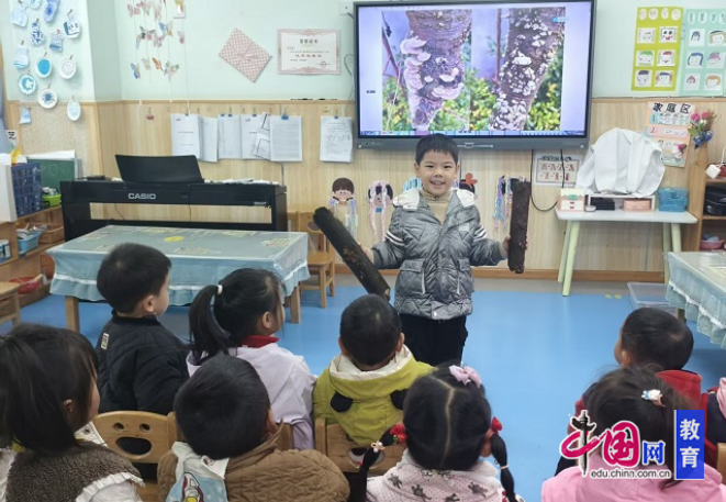 近日,乐山市市中区茅桥幼教育集团茅桥园区大三班的户外探索活动趣味满满。园内一棵长满裂褶菌的大树上,几簇形似“小耳朵”的陌生真菌,瞬间点燃了孩子们的好奇心,一场自然探究之旅就此展开。