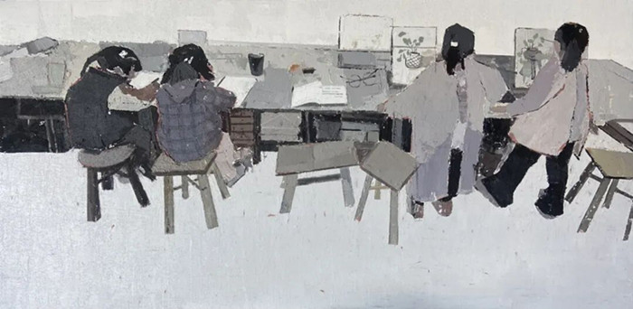 入选作品:赵莲油画作品《教学日记》75cm×150cm