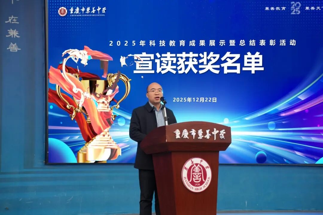冬日暖阳映初心,科创激情燃校园。12月22日,重庆市兼善中学隆重举行科技教育成果展示暨总结表彰活动,全校师生齐聚一堂,共同回顾年度科技教育成果,表彰先进典型,凝聚创新力量。活动由教科室副主任曹严博主持,校长唐亮、副校长王照标出席并颁奖致辞。