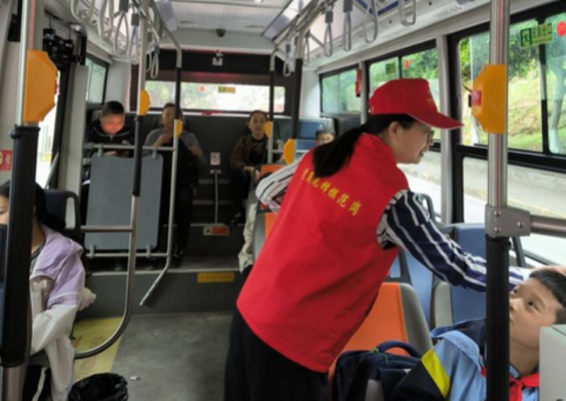 也就是从那一天开始,天池村孩子放学乘坐的公交车上,总有胸前佩戴党徽的志愿者的身影出现,他们就是如今“红石先锋”的前身!他们牺牲自己下班休息的时间、放下家中需要照顾的家人小孩,义无反顾奔向了那群缺乏父母关爱的天池村孩子们,用切切实实的言传身教、用“红石先锋”的爱心相伴温暖孩子们的放学归途!
