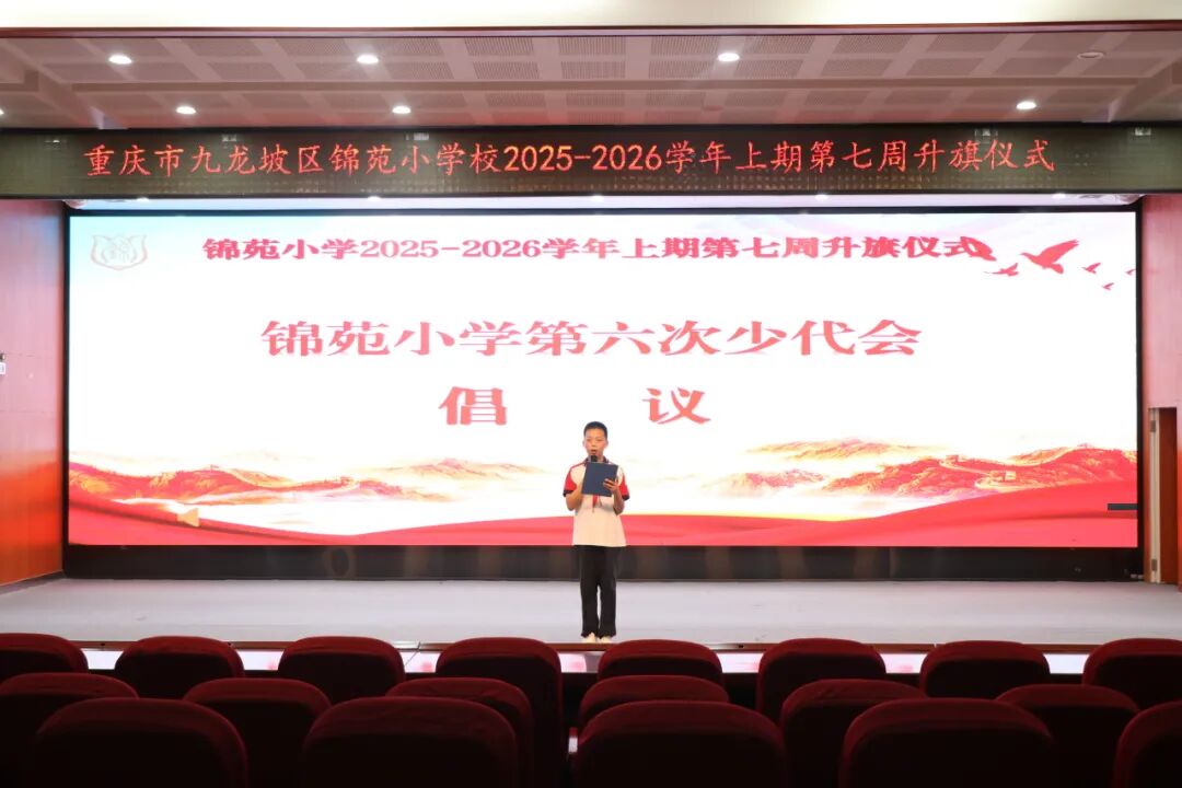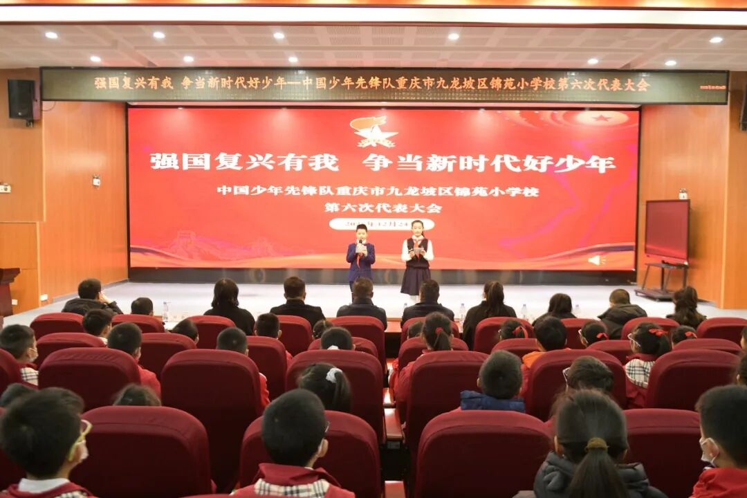 领巾飘飘映初心,队旗猎猎向未来。2025年12月24日,中国少年先锋队重庆市九龙坡区锦苑小学校第六次代表大会隆重召开。学校领导、各中队辅导员代表及来自二至六年级的少先队员代表齐聚一堂,共赴这场属于红领巾的光荣盛会,共商队事、共绘蓝图。