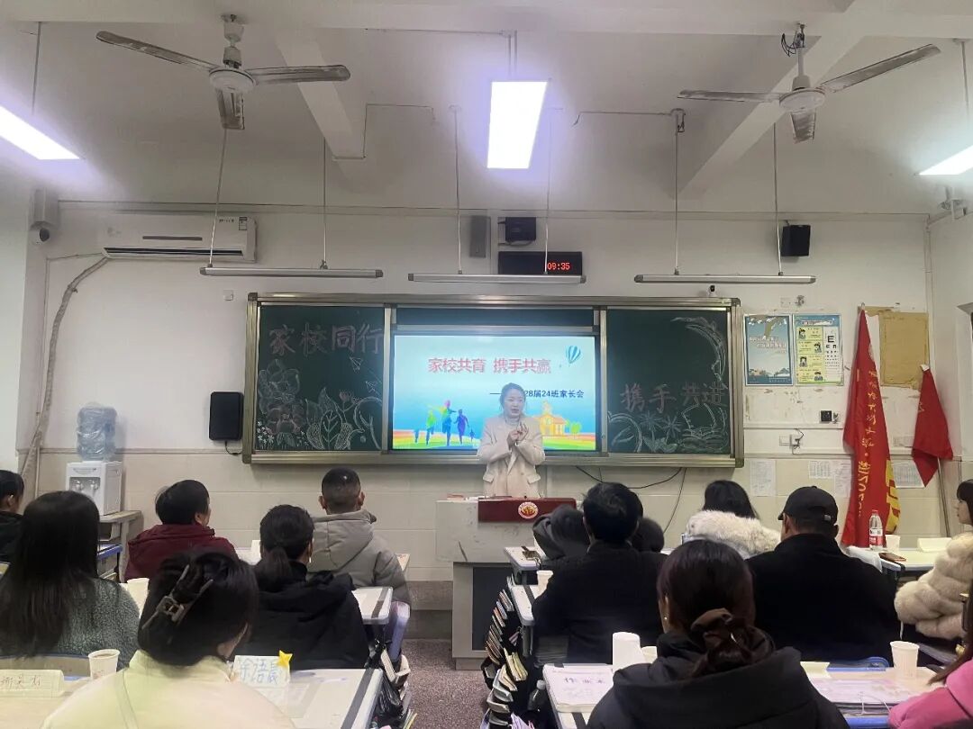 随后,在各班班级教室开启班级层面的交流环节。班主任们借助精心制作的PPT,全面总结了半学期以来班级的整体情况,从学生的课堂表现、作业完成质量、考试成绩分析到班级活动开展等方面进行了细致汇报。同时,针对部分学生出现的学习动力不足、时间规划不合理等问题,班主任与家长们展开深入探讨,并给出了针对性的建议。