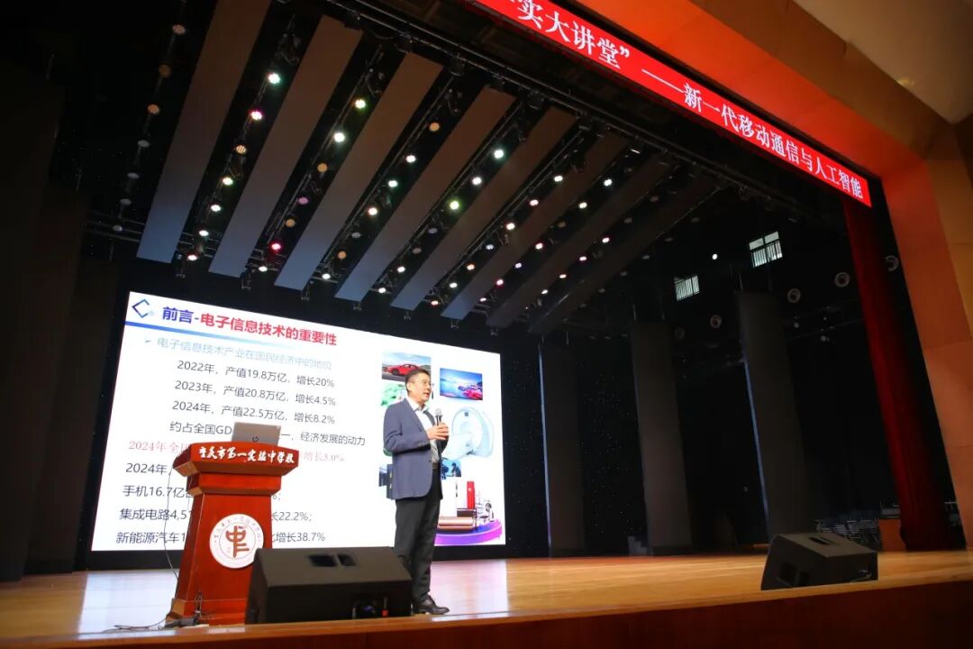 校际合作赋能成长,学术讲座点亮思维。为帮助师生深入了解新一代移动通信与人工智能领域的前沿动态,感受科技产业的蓬勃活力,学校特邀华南理工大学电子与信息学院院长、微电子学院院长薛泉教授,为高中同学开讲“一实大讲堂”,开展以“电子信息技术——高科技产业升级的引擎”为主题的专业讲座。
