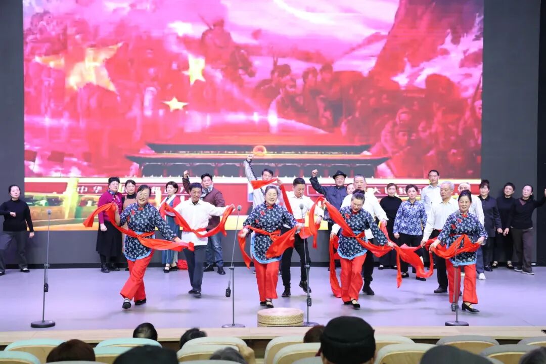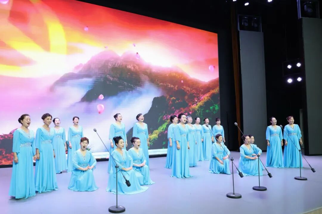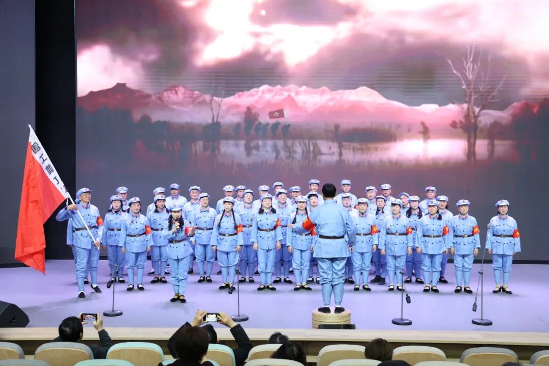 区退休教师协会“润之美”艺术团的老师们带来的合唱《唱支山歌给党听》,一开口就惊艳全场,熟悉的旋律勾起了无数青春回忆。
