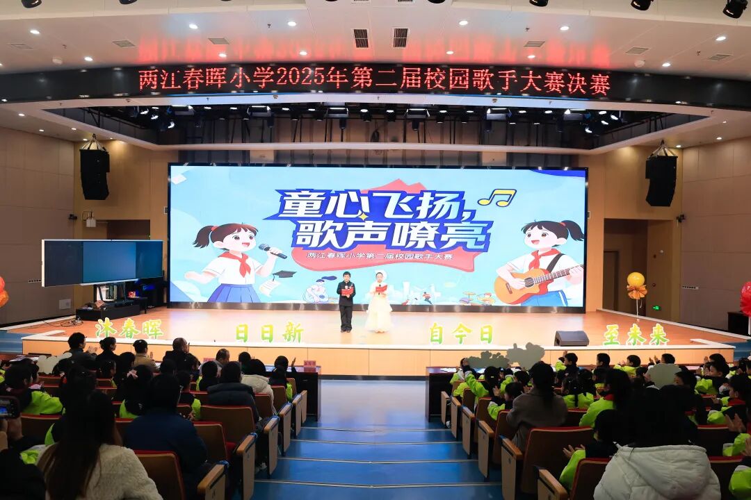 当旋律奏响校园,当歌声点亮童年,一场属于春晖学子的音乐盛宴如约而至!经过班级选拔、复赛比拼,重庆市两江春晖小学第二届校园歌手大赛决赛于12月18日圆满落幕。14位从复赛中脱颖而出的选手登上舞台,用清澈的嗓音、真挚的情感,唱响了童年最美的乐章。