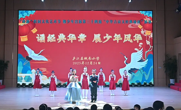 为传承中华优秀传统文化,厚植清廉校园文化底蕴,2025年12月24—26日,庐江县城南小学分年级举办“清廉”校园文化艺术节暨少年宫第三十四届“中华古诗文经典诵读”展演活动。全校学子以声传情、以诵明志,在经典诗文的浸润中展现少年风华。