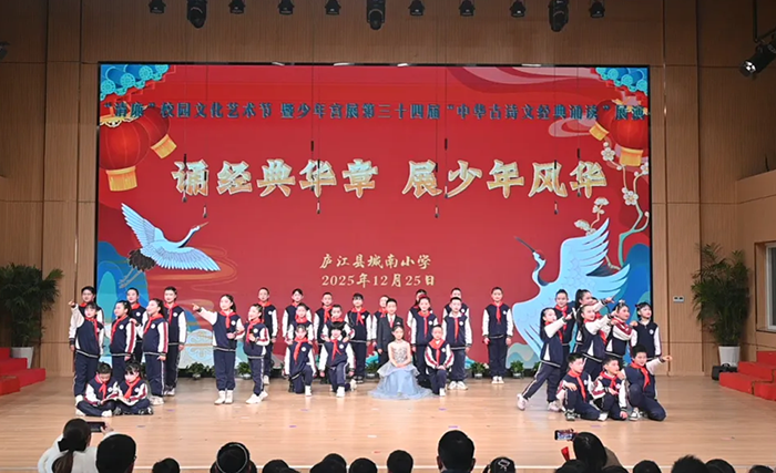 此次经典诵读展演,是庐江县城南小学推进“清廉校园”建设与传统文化教育融合的重要举措。学校始终以经典诵读为载体,引导学生在品味诗文之美中感悟家国情怀、涵养清廉品格,不仅提升了学生的语言表达与审美能力,更让中华优秀传统文化成为滋养少年成长的精神沃土。