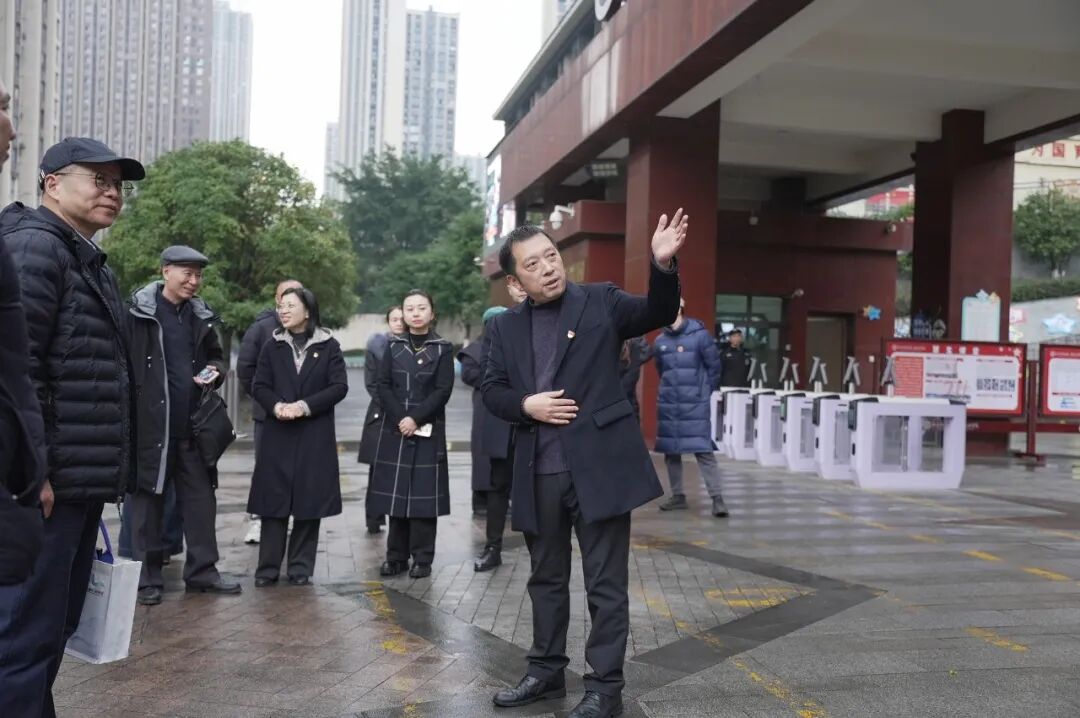 2025年12月25日,重庆高新区教育事务中心组织专家组莅临重庆科学城第一实验小学校,实地考察并综合评审学校“童心教育” 文化建设阶段性成果。学校党总支书记宋自渝率全体行政干部全程陪同,并就文化建设成果作现场汇报。