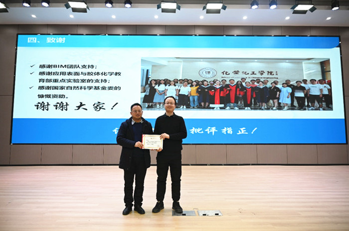 蚌埠学院杨庆敏博士以“生物大分子自组装的金属分离材料可控构筑及应用研究”为题作报告,报告介绍了使用低成本、易获得的牛血清白蛋白构建了一种具有“三明治”结构的膜材料,提出一种牛血清白蛋白膜对常见吸附颗粒物表面工程化的普适方法,设计合成了β-环糊精接枝的溶菌酶分子,构建了一种功能型的绿色环保型材料,对建设资源节约型、环境友好型社会具有重要意义。