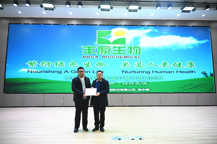 安徽丰原生物技术股份有限公司副总经理陈中碧以“生物新材料聚乳酸纤维开发与应用助力“双碳”目标实现”为题作报告,报告主要阐述聚乳酸的环保可降解、低碳排放等优良性能,展示了丰源公司生产的聚乳酸与其它公司产品的区别,并详细介绍企业在聚乳酸纤维生产及其创新应用研究中所取得的成绩。