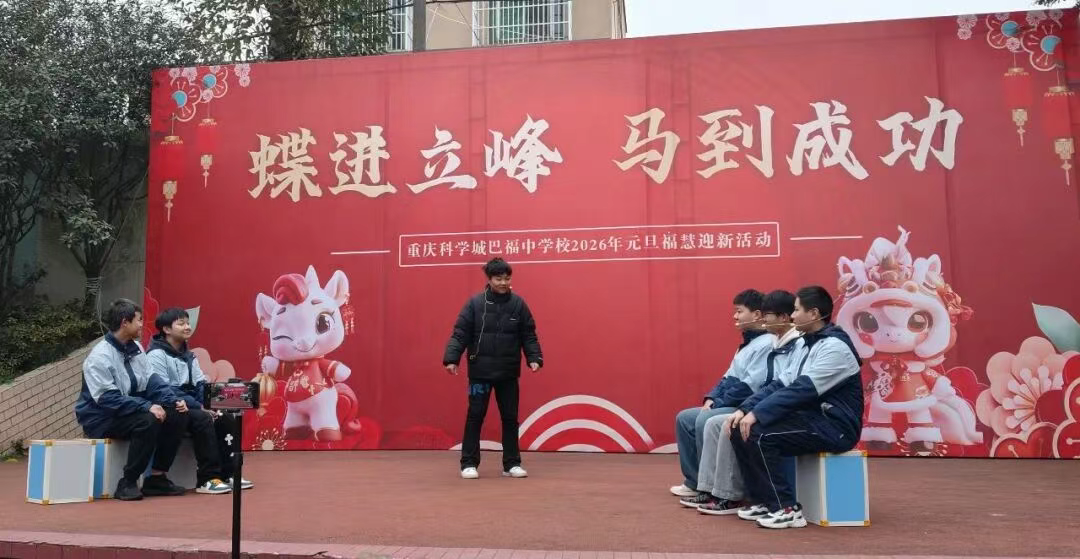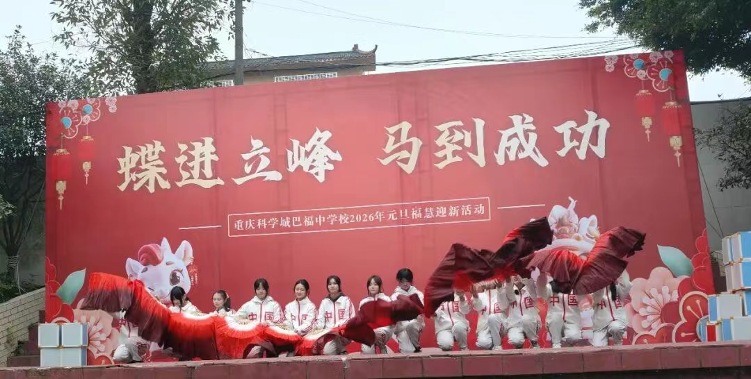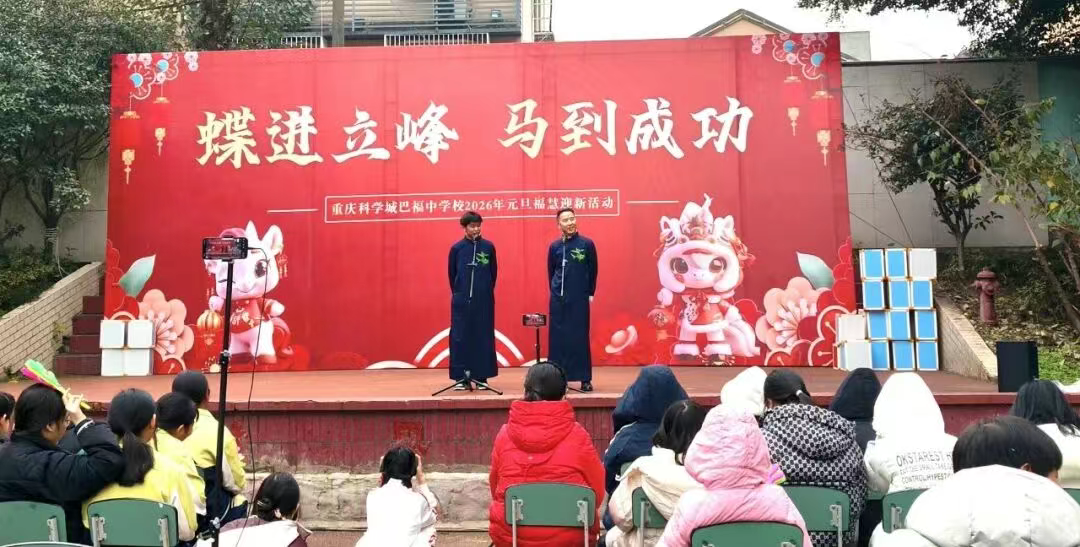 时光流转,岁序更新。在辞旧迎新的美好时刻,重庆科学城巴福中学校校园内暖意融融、欢声阵阵,全体师生欢聚一堂,隆重举行以“蝶进立峰•马到成功”为主题的2026年元旦福慧迎新活动,共同迎接新年的第一缕曙光。