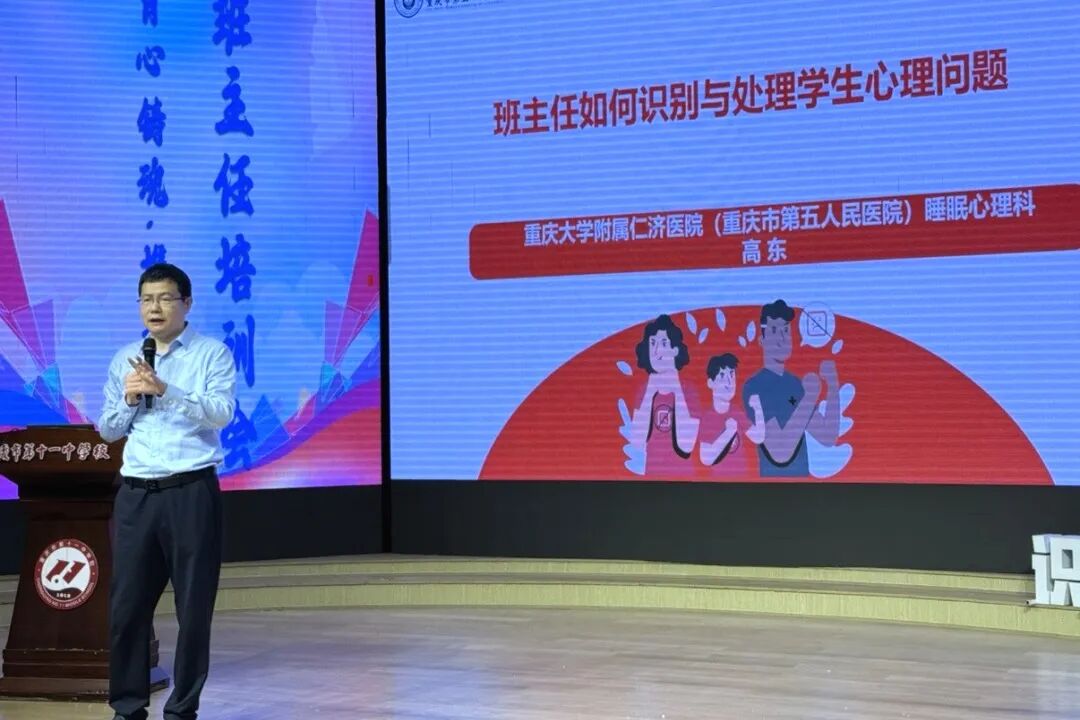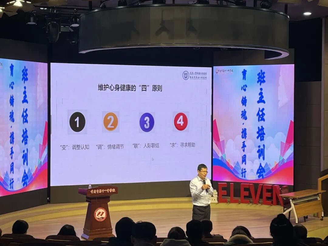 为进一步维护教师心理健康,提升班主任心育专业能力,12月26日,重庆市第十一中学校班主任专题培训会特邀重庆五院睡眠心理科主任高东教授到校,带来《班主任如何识别与处理学生心理问题》的精彩分享。