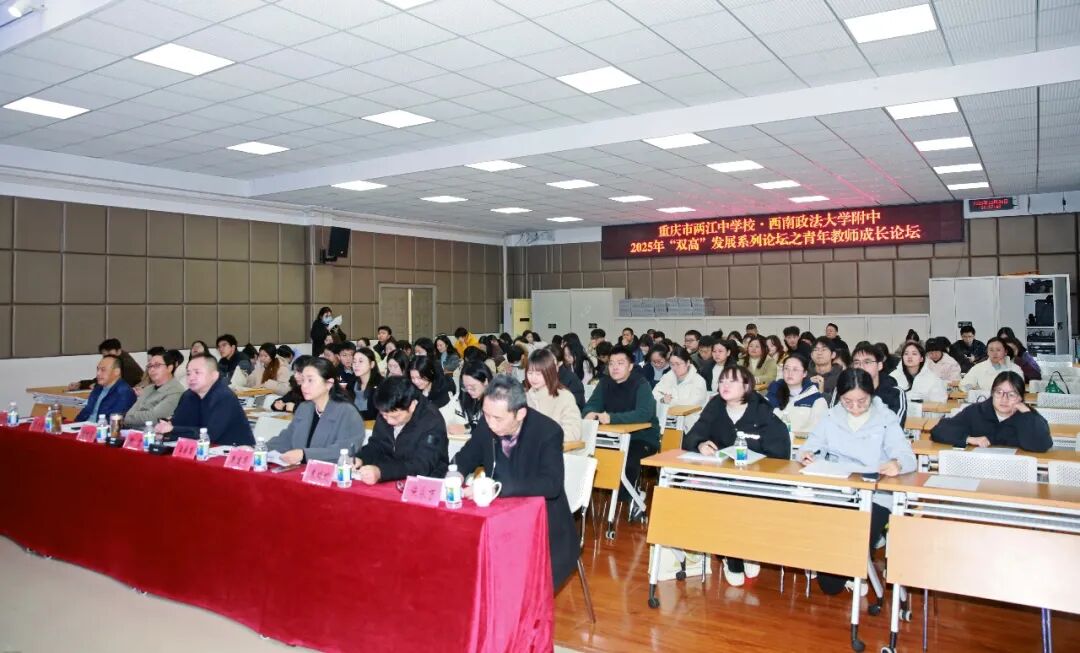 2025年12月26日,重庆市两江中学校在多功能厅顺利举行了主题为“赋能'青师'・共筑'双高'——教育家精神引领下青年教师专业成长之路”的青年教师成长论坛。校级领导、教务处、教科处、德育处正副主任、非毕业年级主任及2024年、2025年新进教师齐聚一堂,以教育家精神为炬,以实践智慧为笔,共绘青年教师专业成长新图景。