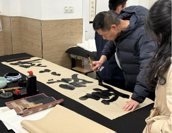 在李老师示范指导结束后,文德中学的师生们即刻投入书法实践环节。老师们挥毫书写书法作品,笔墨间尽显功底;学生们则端坐桌前,对照碑帖认真临摹笔画与字形,有的还尝试创作书法小品。现场墨香四溢,师生们在亲身体验中践行书法技艺,让书法学习真正落到实处。