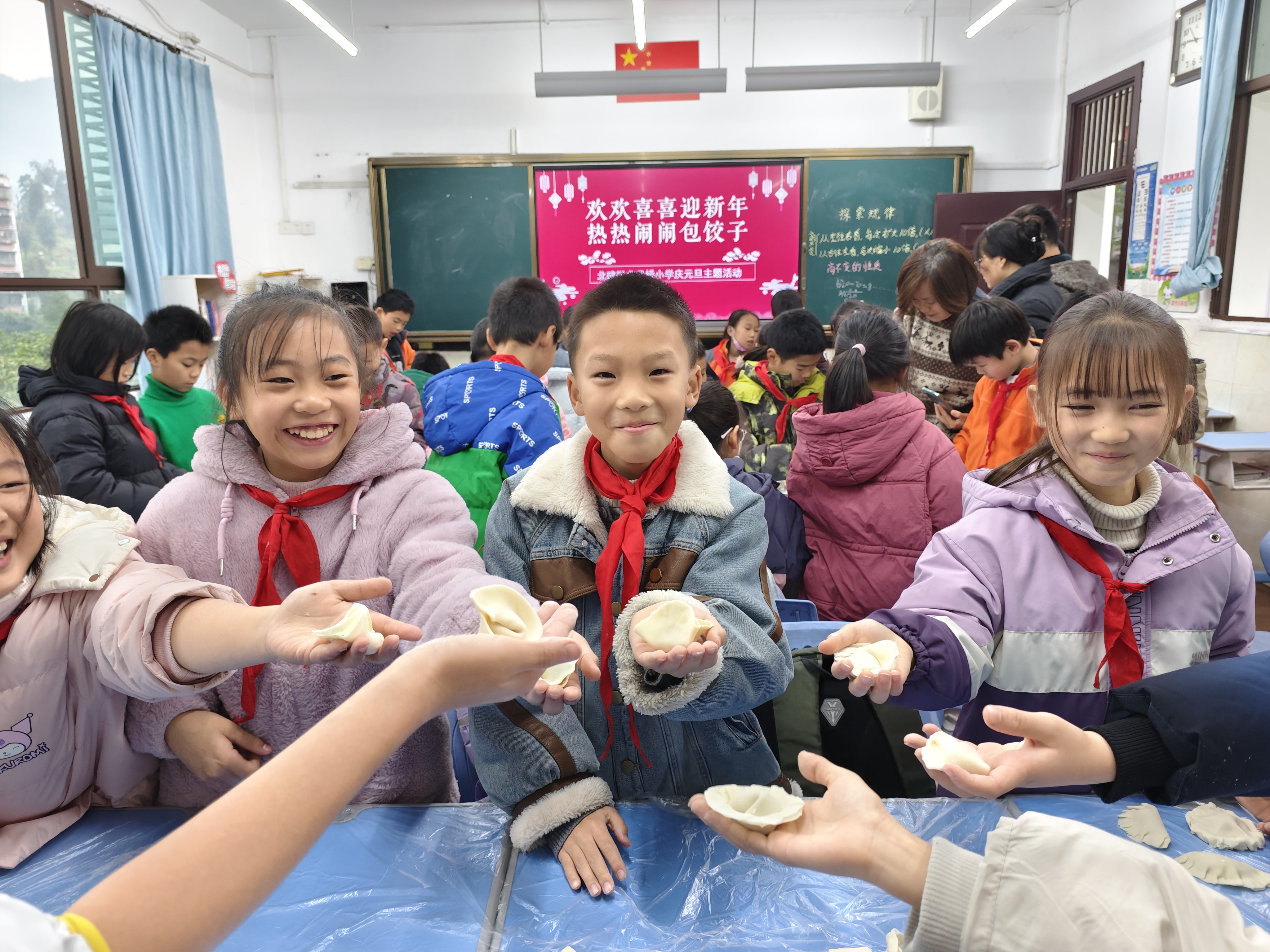 2025年12月30日上午,重庆市北碚区龙凤桥小学以班级为单位开展了“欢欢喜喜迎新年 热热闹闹包饺子”的主题活动,家长代表们与师生齐聚一堂,共赴一场充满烟火气的迎新之约,在动手实践中品年味、传温情。