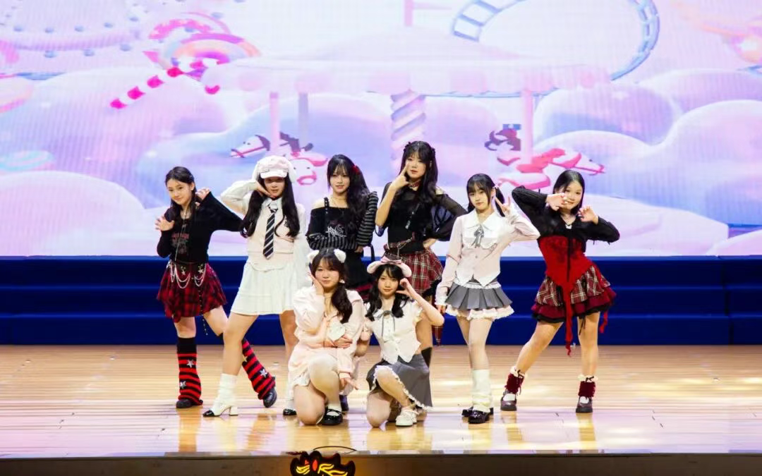 汇演在2024级2班舞蹈《春意红包》的喜庆旋律中拉开帷幕。口风琴队带来的市级一等奖作品《云宫迅音》大气磅礴,2024级1班《笔绘奔马,墨舞青春》将悲鸿精神融入笔墨舞步,校E乐队《山鬼》与《刻在我心底的名字》演绎古今深情。教师们化身“快乐使者”,七年级教师《猪猪侠》童趣盎然,九年级教师《不要慌,太阳下山有月光》传递暖心力量。