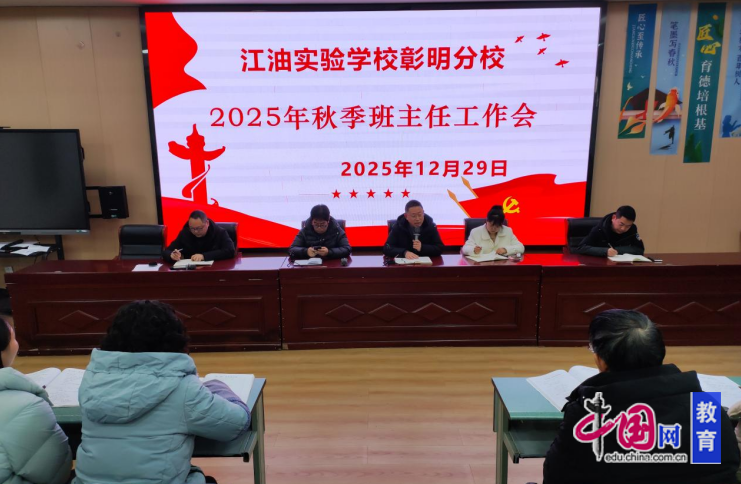 12月29日,江油实验学校彰明分校召开2025年秋季学期期末班主任工作会议,围绕学期末班级管理与教育教学收官工作进行系统部署。学校领导班子及全体班主任参加会议。