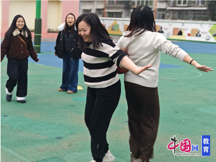 活动共设“众志成城”“螃蟹过河”“齐心协力”“玩转雪球”四个趣味竞赛项目。比赛中,老师们通过羽毛球拍接力、背靠背夹球侧行、围圈传足球、纸筒传乒乓球等新颖形式,展现出高度的团队协作与默契配合,现场气氛热烈、欢笑不断。