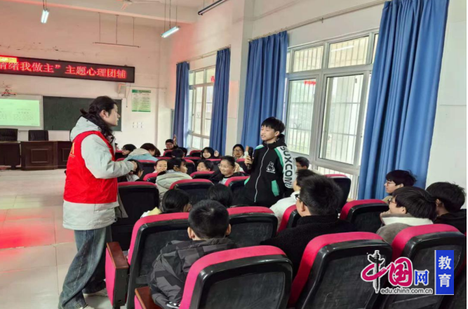 与此同时,心理团辅活动在学校阶梯教室温馨启幕。心理辅导老师紧扣“情绪”核心主题,精心设计游戏互动、分享交流等环节,循序渐进引导学生认知情绪的定义、种类及功能价值。在轻松愉悦的氛围中,学生们卸下拘谨,主动参与、积极分享。辅导老师以游戏形式传授学生简单实用的情绪管理技巧,为学生的心理健康筑牢坚实屏障。