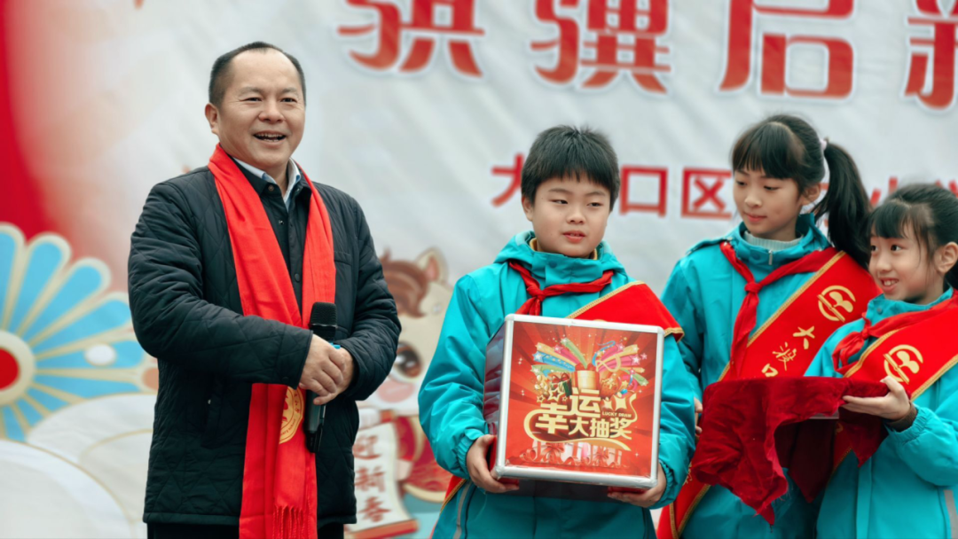 活动中,“幸运抽奖”环节巧妙穿插其间,校领导与行政老师现场抽取幸运师生,送上新年祝福,台上台下互动热烈,洋溢着欢声笑语。