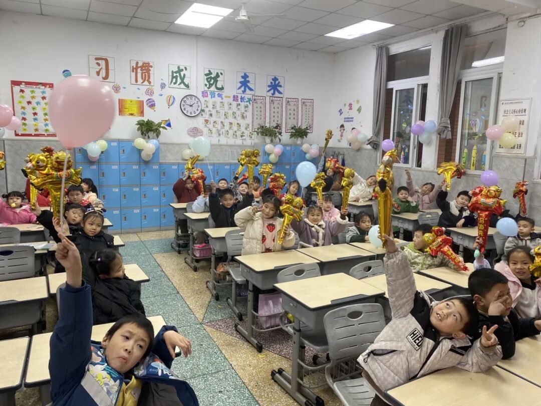 门扉轻掩,内里却自成一个欢腾的小世界。低年级的教室宛如童话乐园,稚嫩的童声合唱《新年好》,童趣的手工剪窗花、绘福字,简单的游戏里爆发出最纯粹的笑声。中高年级的场面则更为热烈,知识竞答比拼脑力,即兴才艺展示令人喝彩,有的班级甚至开起了小小的“班级春晚”,相声、歌舞、乐器演奏轮番登场,平日里腼腆的同学也在此刻焕发自信光彩。