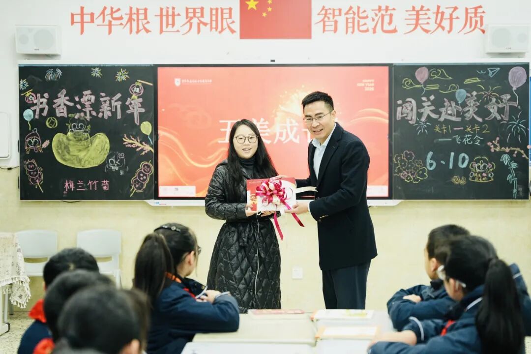 活动伊始,江均斌校长带领管理团队将定制奖状郑重交付班主任,再由班主任亲手送到每位学生手中。“礼美小榜样”“智美小尖兵”“健美小达人”“艺美小明星”“创美小能人”,每一项称号都精准呼应学生的闪光点,既见证了一学期的成长积淀,更唤醒了内在驱动力。从期初立标到每月进阶,从自主申报到民主评议,评价不再是简单的结果判定,而是引导学生认识自我、超越自我的成长课程。