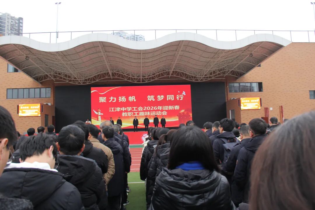 2025年12月31日下午,重庆市江津中学校田径场上一片欢声笑语。一年一度的教职工趣味运动会欢乐上演。几江初中、滨江初中、高一、高二、高三年级及处室共六支队伍齐聚赛场,在轻松活泼的运动中释放压力、凝聚力量,以热情洋溢的姿态迎接2026新年的到来。