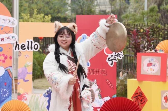 大家将把热闹的传统庙会“搬”进幼儿园,打造一个沉浸式汉风市集。这是汉文化周的高潮,也是一场全园参与的元旦狂欢!气势磅礴的鼓舞与舞龙舞狮率先点燃全场,舞蹈《小小云朵》、《我们都会过马路》、全员手势舞《元日》接续上演,在诗舞乐中,共迎新岁。