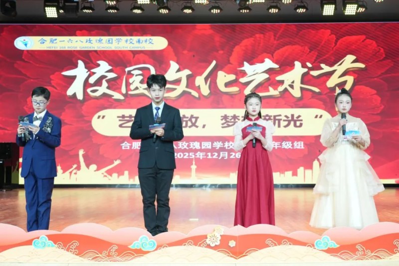 近日,合肥一六八玫瑰园学校南校第三届校园文化艺术节六年级专场展演活动在初中部演播大厅隆重举行。此次活动以“青春绽放,艺韵飞扬”为主题,集中展示了六年级学生与少年宫戏曲社团的丰硕艺术成果,为观众呈现了一场精彩纷呈的文化视听盛宴。
