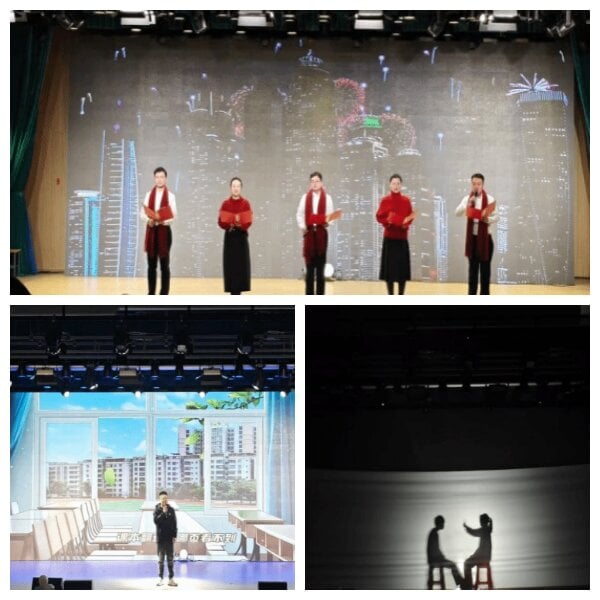 智能装备系教师献上朗诵《师语新愿》,真挚话语传递对未来的期许;吴永波老师的原创歌曲《那年夏天的时光》婉转深情,勾起台下观众的青春回忆;现代服务系的幕布剧《时光放映机》创意十足,以独特形式演绎校园岁月故事。