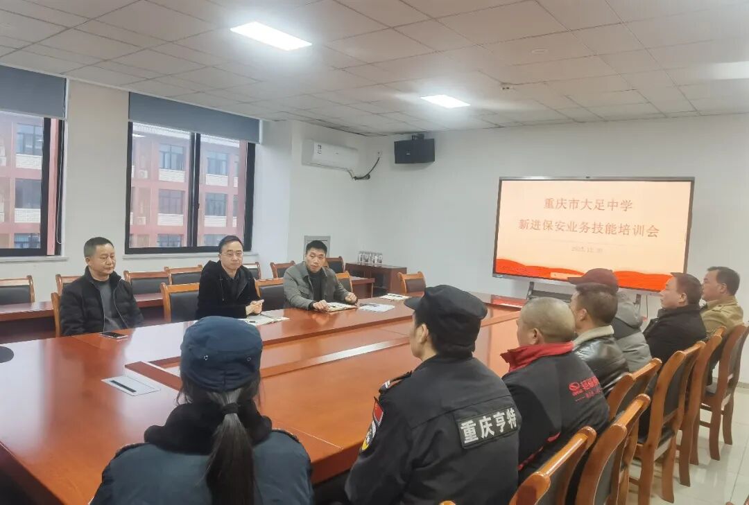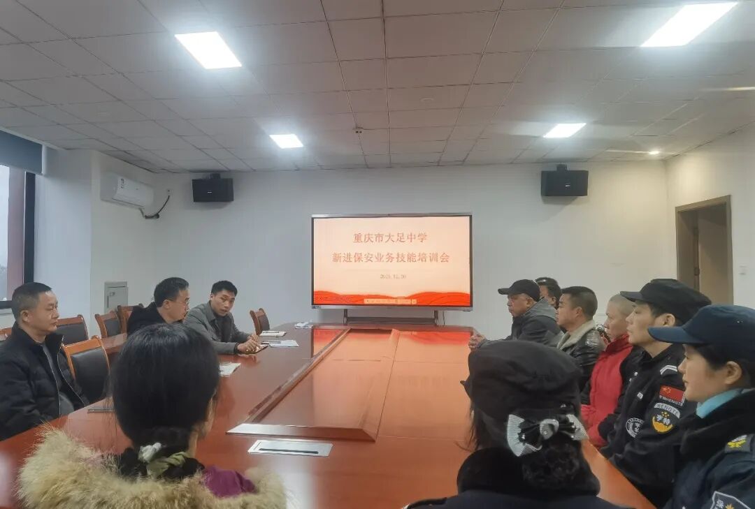 为进一步加强校园安全管理,提升保安队伍的业务水平,12月30日下午,重庆市大足中学校安全稳定法治办在昌州校区行政楼四会议室组织召开了新进保安人员业务技能培训会。会议由安全稳定法治办主任周跃均主持,副校长刘兴林和全体新进保安人员参加了会议。