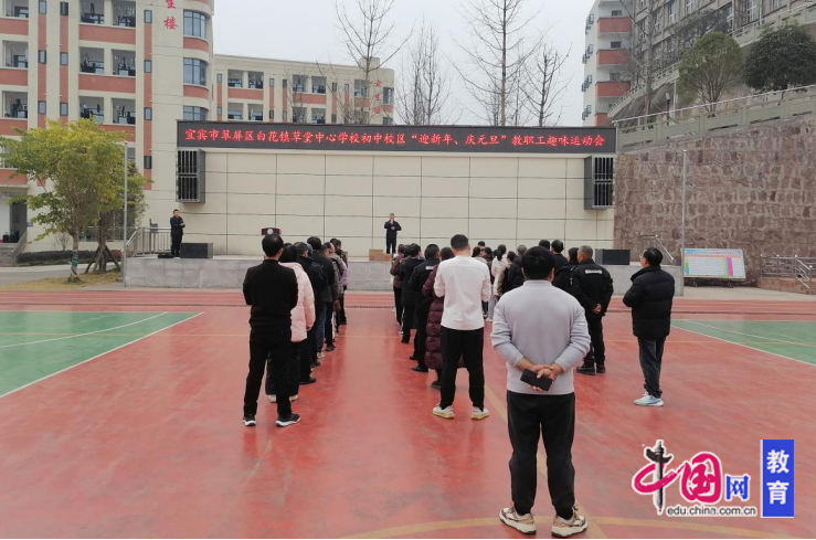 为进一步丰富教职工文化生活,增进团队凝聚力,营造积极向上、健康活力的校园氛围,2025年12月31日,宜宾市翠屏区白花镇草堂中心学校初中校区在操场举行了“迎新年、庆元旦”教职工趣味运动会。全体中心校成员及初中部教职工以年级为单位分为三组,在欢声笑语中挥洒汗水、展现风采,以运动的方式共同迎接2026年的到来。