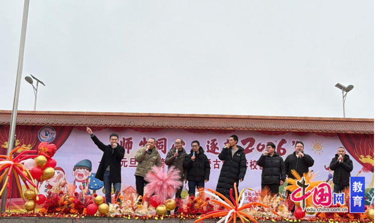 活动在庄严的升旗仪式中拉开序幕。全体师生肃立齐唱国歌,激昂的旋律点燃爱国热情。校区校长侯毅发表致辞,回顾2025年学校发展成果,寄语师生以“逐梦”为帆,在2026年携手书写新篇章。主持人宣布活动开始后,一场活力四射的舞蹈串烧瞬间点燃全场,师生们挥舞红旗,沉浸在欢腾的节奏中。