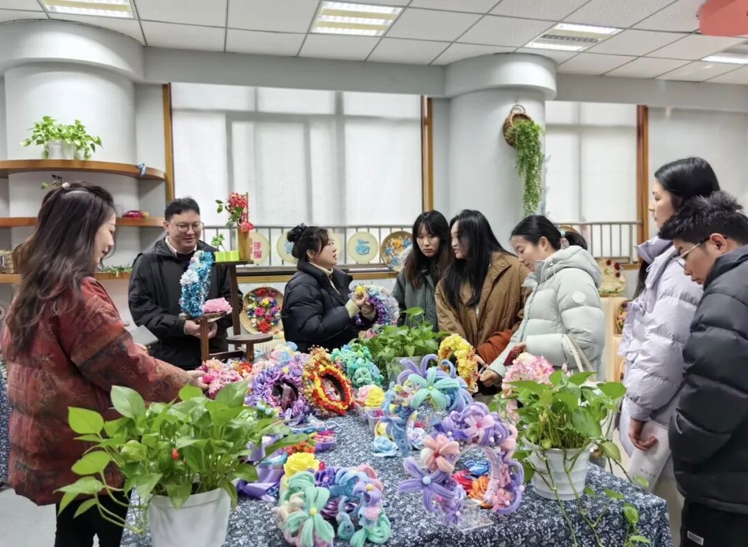 锦苑小学的美术教师们先后参观了鹅公岩小学簪花手工社团与黏土社团。簪花手工社团的指导教师杨苇详细介绍了社团课程设置、学生创作思路及作品特色,精美的簪花作品与学生丰富的创造力让老师们倍感惊艳;黏土社团指导教师欧泽艳则逐一讲解学生黏土作品的创作过程与技巧,生动展现了美育实践的丰硕成果。