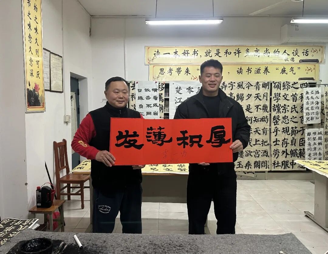 最后,在学校书法室,李一鸣留下了“厚积薄发”的墨宝,期望学校扎实开展摔跤项目,学生们刻苦训练,通过摔跤训练力挽狂澜,厚积薄发,一鸣惊人。