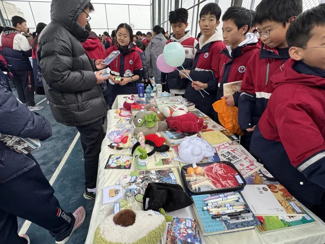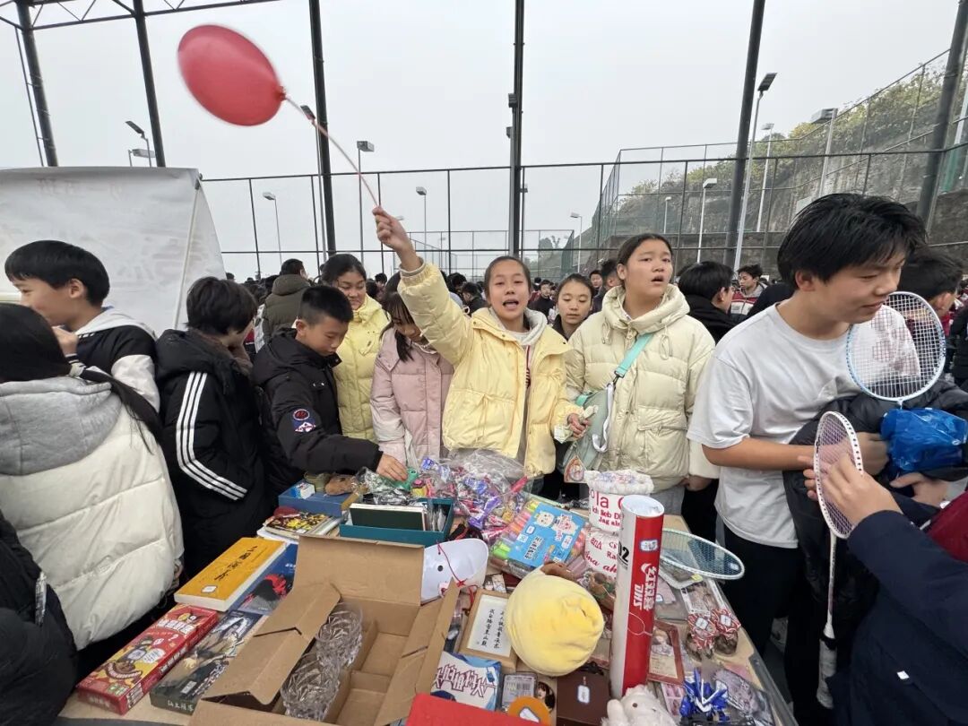 售卖现场热闹非凡,同学们化身 “小小摊主”,热情地向过往师生介绍商品。前来“淘宝”的师生络绎不绝,大家穿梭在各个摊位之间,仔细挑选着心仪的物品,时不时与摊主讨价还价,场馆内充满了欢声笑语。据初步统计,本次跳蚤市场共有59个班级参与,部分班级将所得款项捐赠给了公益组织,用实际行动践行爱心与责任。